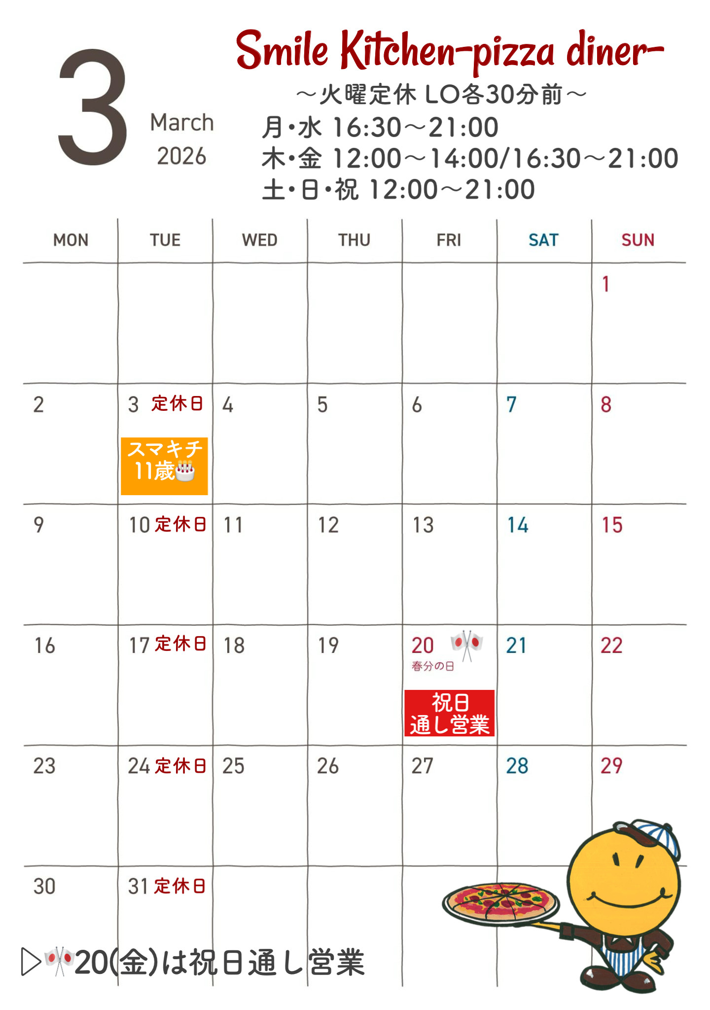 🌼3月の営業カレンダー