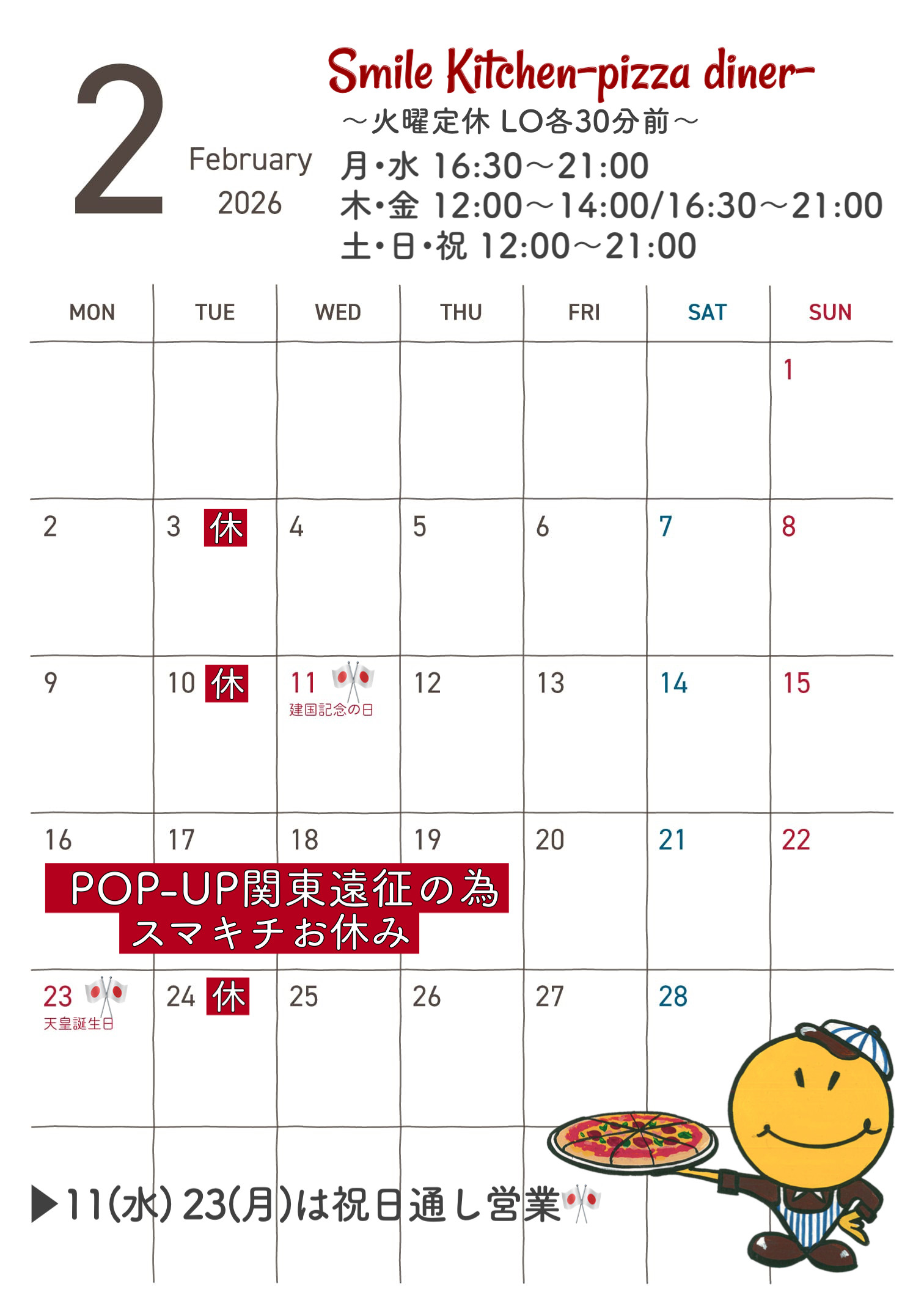 ☃️2月の営業日カレンダー