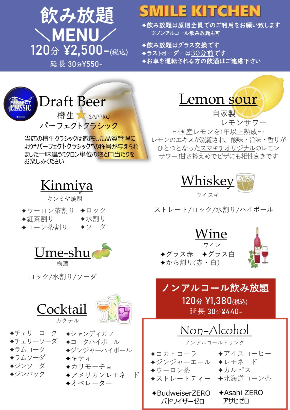 パーフェクトクラシックや自家製レモンサワーなど飲み放題もご用意しております!
